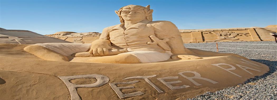 Peter Pan is a character created by Scottish novelist and playwright J. M. Barrie. A mischievous boy who can fly and never ages. He spends his never-ending childhood adventuring on the small island of Never Land as the leader of his gang, the Lost Boys. Interacting with mermaids, In the Disney films, Peter wears an outfit that consists of a short-sleeved green tunic and tights apparently made of cloth and a cap with a red feather in it. He has pointed elf-like ears, brown eyes and his hair is dark red.